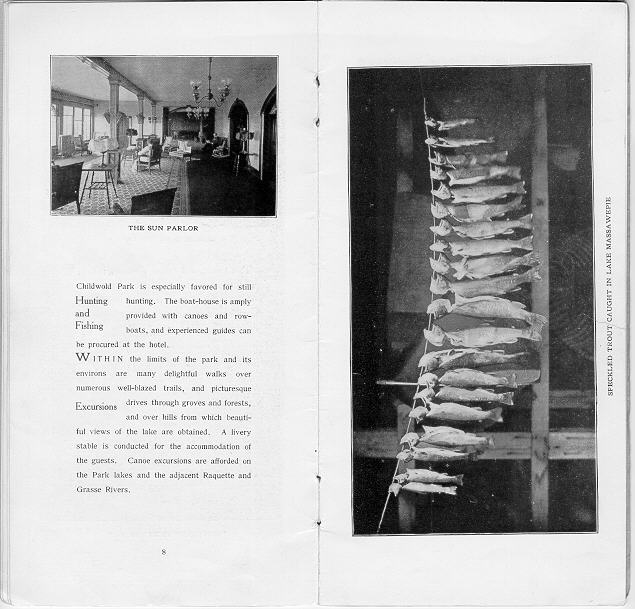 | New January, 2024: Link to Childwold Park House 1891 "Second Season" brochure | Description of Hotel Childwold from Adirondack Lodges, 1892 |