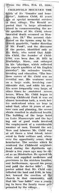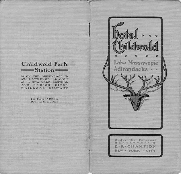 | 2/12/1898 obituary of Addison Child (d.1/23/98) | Hotel Childwold Brochure circa 1900: Cover Page 1 Pages 2-3 Pages 4-5 Pages 6-7 Pages 8-9 Pages 10-11 Map (pages 12-13) Pages 14-15 Pages 16-17 Pages 18-19 Pages 20-21 Page 22-23 |