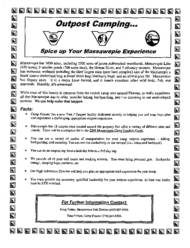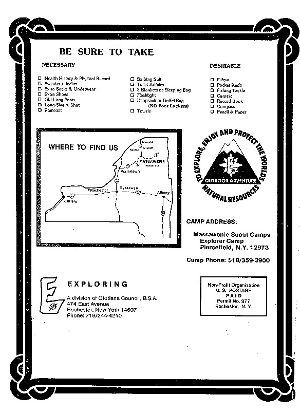 | 2001 Information for Parents: Page 1 Page 2 Page 3 Page 4 Page 5 Page 6 Page 7 Page 8 Page 9 | 2001 Adirondack High Adventure Trek Brochure: Page 1 Page 2 Page 3 Page 4 Page 5 Page 6 Page 7 |