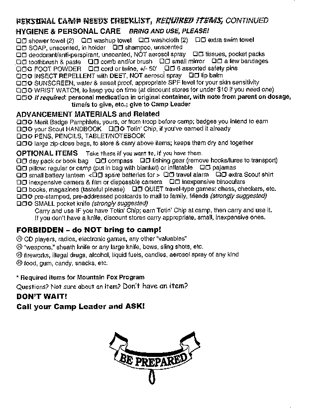 New November, 2024: 1990 Camp Mountaineer First Days info & Merit Badge Schedule |