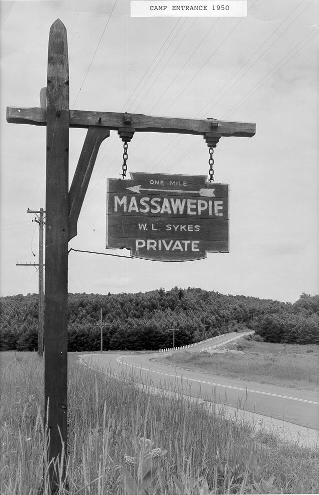 Entrance sign showing "Massawepie - W.L. Sykes - Private" |