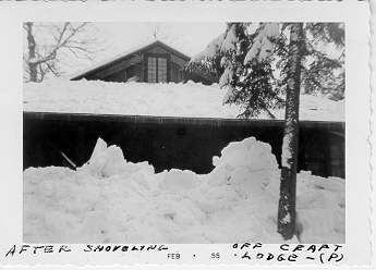 Snow pile from roof of Pioneer Handicraft Lodge (former hotel casino)