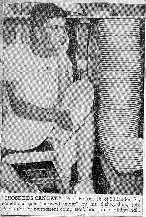 Kitchen staff member with too many dishes to wash! (Newspaper photo) |