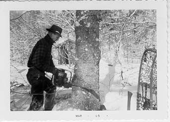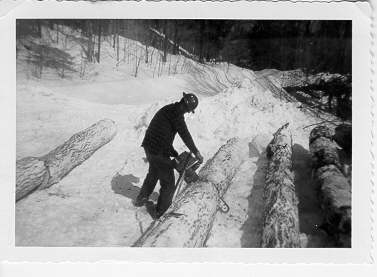 Chuck Burgdorf logging at Massawepie, February, 1955: