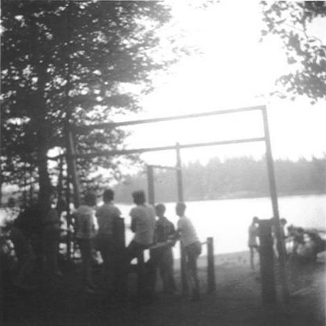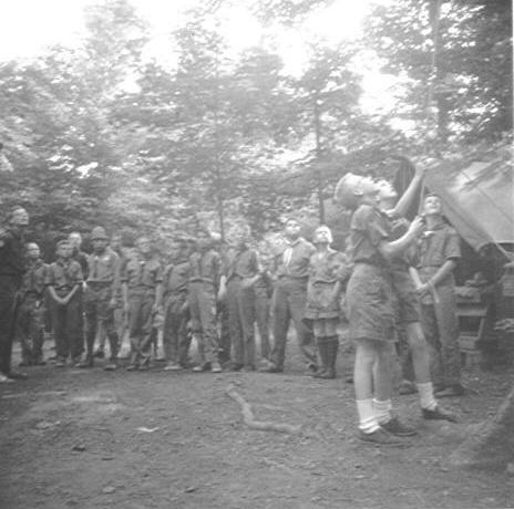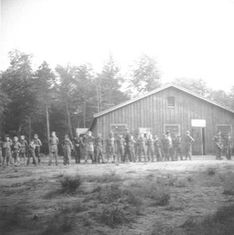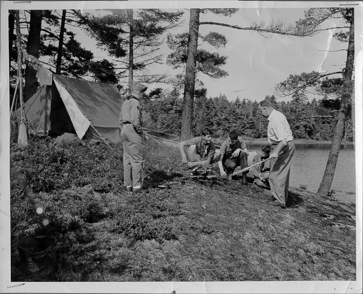 Fred Wellington with Scouts at outpost, 1950's |