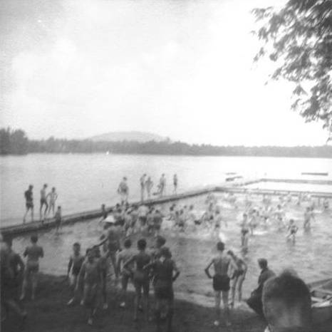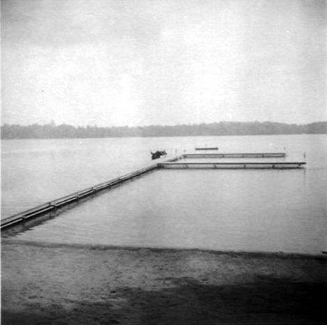 Boats on Pioneer Beach with Swim Dock in background (Newspaper photo) |