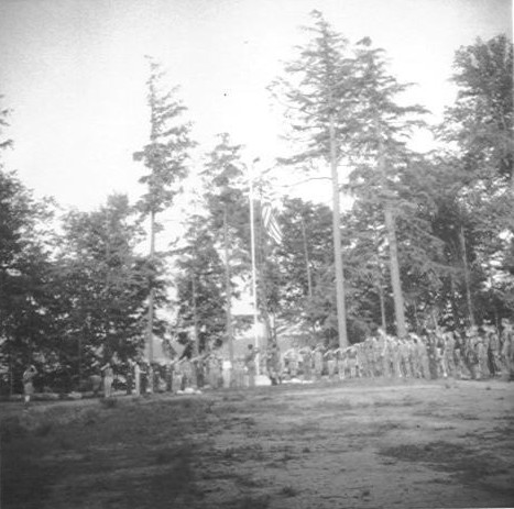 Scouts at flag ceremony outside the Mountaineer Dining Hall |