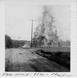 Park House fully engulfed, 5/16/53 at 9:20 a.m.
