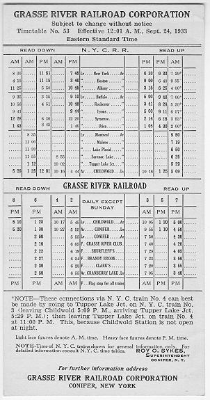 Grasse River Railroad Timetable #53, effective 9/24/1933: Schedule Map |