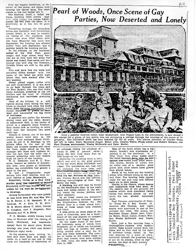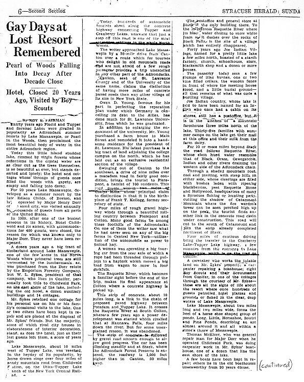 | 1929 Syracuse Herald newspaper article about abandoned Hotel Childwold