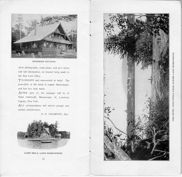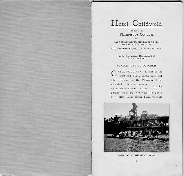 | 2/12/1898 obituary of Addison Child (d.1/23/98) | Hotel Childwold Brochure circa 1900: Cover Page 1 Pages 2-3 Pages 4-5 Pages 6-7 Pages 8-9 Pages 10-11 Map (pages 12-13) Pages 14-15 Pages 16-17 Pages 18-19 Pages 20-21 Page 22-23 |