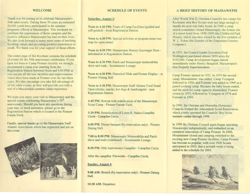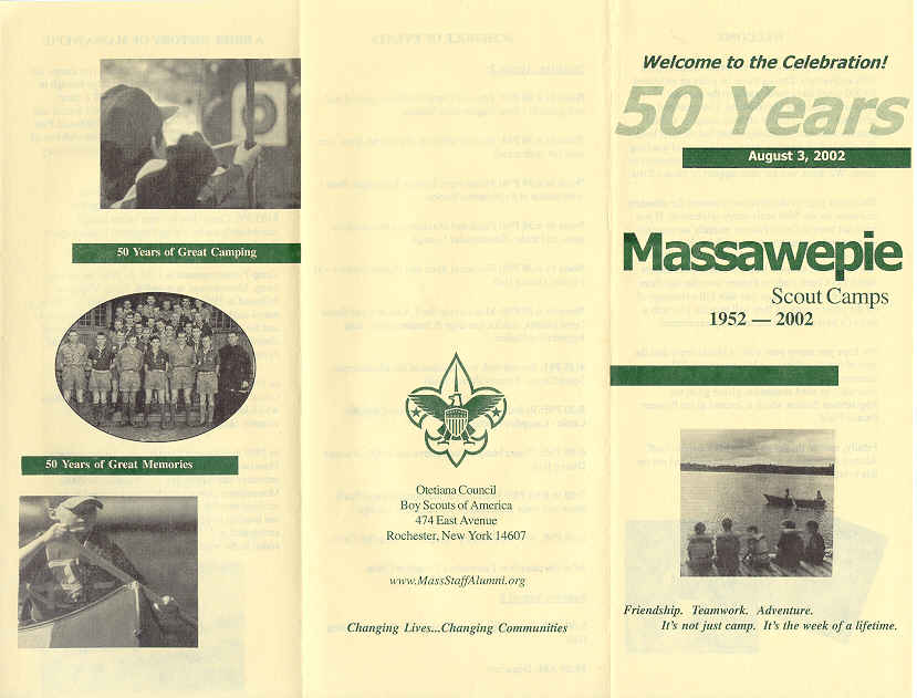 | 50th Anniversary Celebration (8/3/02) Brochure Page 1 Page 2 | 2002 Massawepie Staff Alumni Association 50th Anniversary Patch