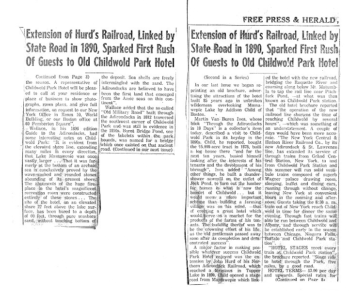 | 1973 Staff Contract for Dave Polansky, Mountaineer Nature-Conservation Aide | 1974 two-article series on Hotel Childwold in Tupper Lake Free Press and Herald 1st article 2nd article |