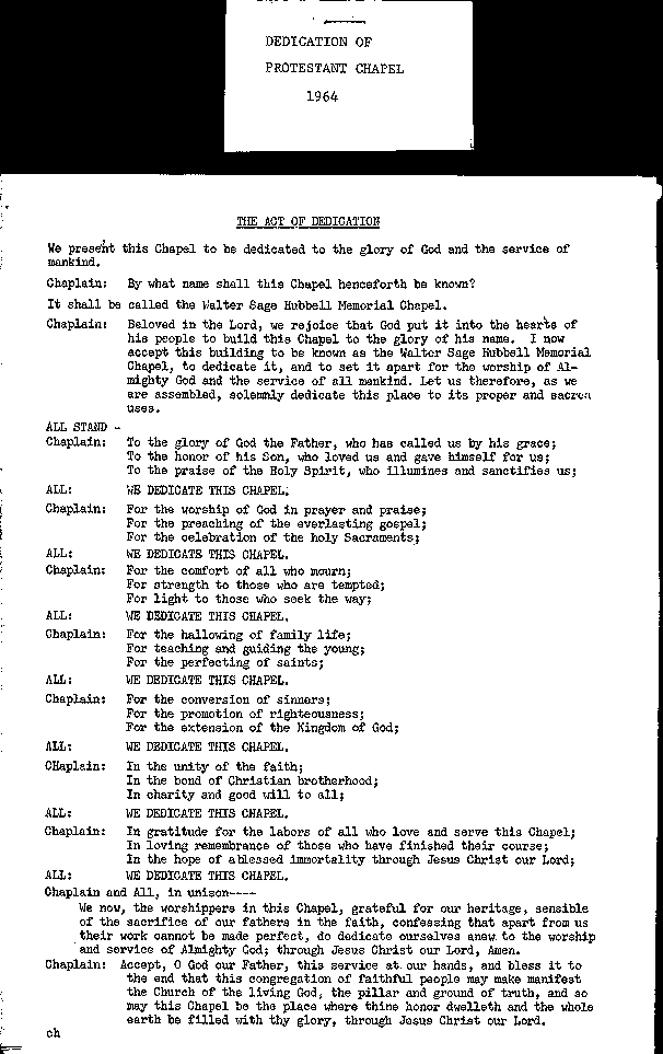 | 1964 Program for Dedication of the new Walter Sage Hubbell (Memorial) Protestant Chapel, located in Camp Voyageur | 1965 Adirondack Adventure Trail Flyer Page 1 Page 2 Page 3 |