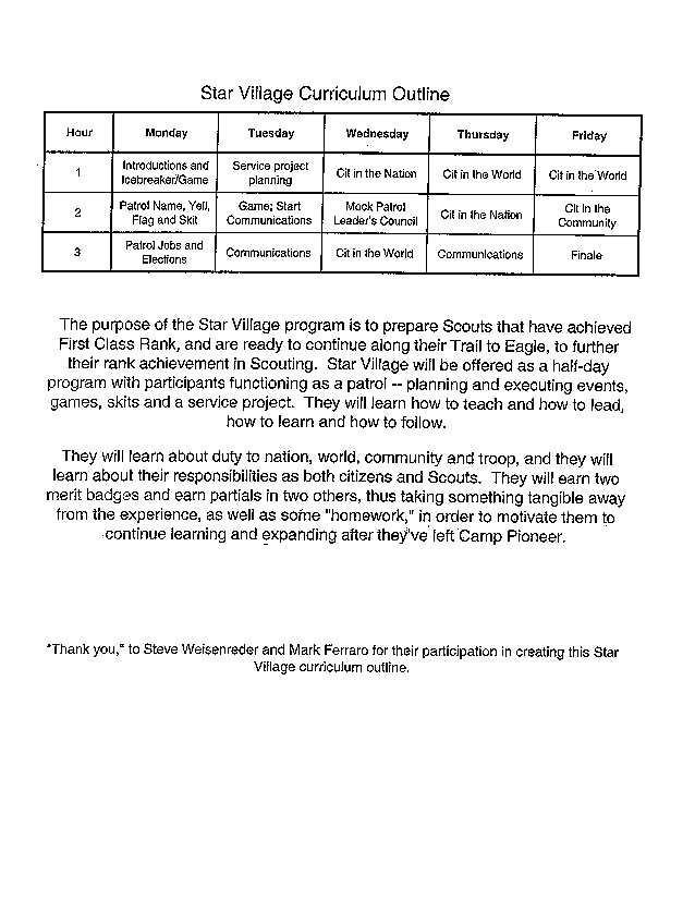 | 2001 Summer Camp Promotional Poster Cover Page 1 Page 2 | 2001 Star Village Program for First Class Scouts |