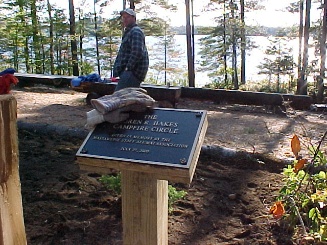 The new Loren Hakes Campfire Circle is located on Massawepie Lake, in the same place as the earlier Camp Pioneer Campfire Circle. This photo is from the 1950's |