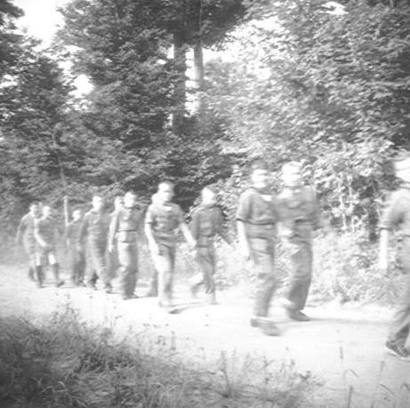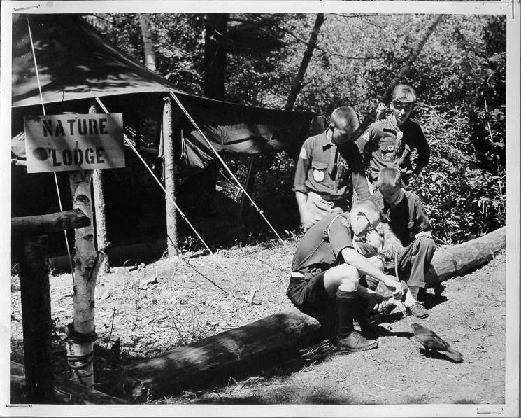 Fred Wellington with Scouts at outpost, 1950's |