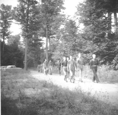 Scouts walking by the Mountaineer Dining Hall (Newspaper photo) |
