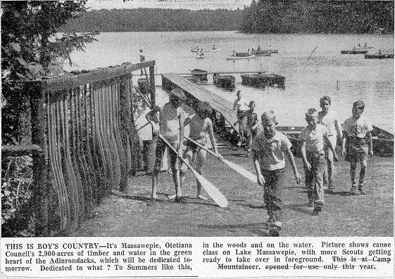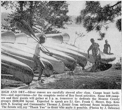 Scouts practice paddling in front of Pioneer boat dock (Newspaper photo) |