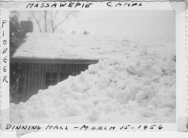Snow pile from roof of Pioneer Dining Hall |