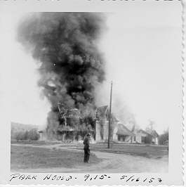 Park House fully engulfed, 5/16/53 at 9:20 a.m.
