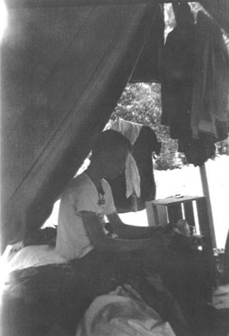 Another Scout in tent in troop site, Camp Pioneer |